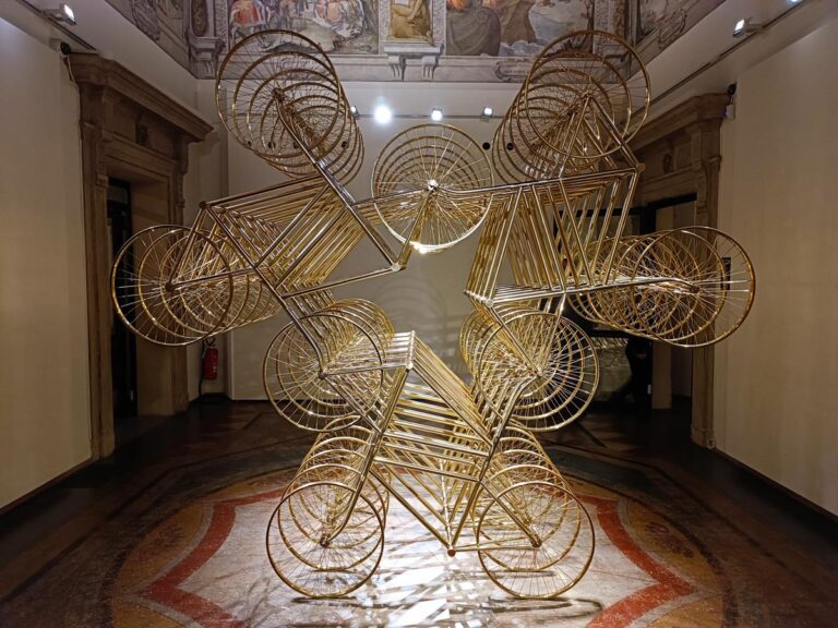 Oltre, va menzionata la scultura monumento alle biciclette, un grande classico della sua produzione, in questo caso dorate e con un forte richiamo all’estetica celebrativa di un grande simbolo di libertà della sua giovinezza: Forever (Stainless steel bicycles in gilding).