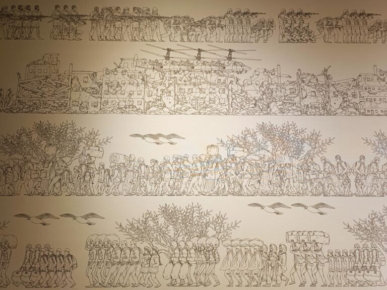 Odyssey è della stessa pasta del precedente lavoro narrato; una carta da parati estesa in tutta una stanza con scene di odierna odissea vissute dai migranti.